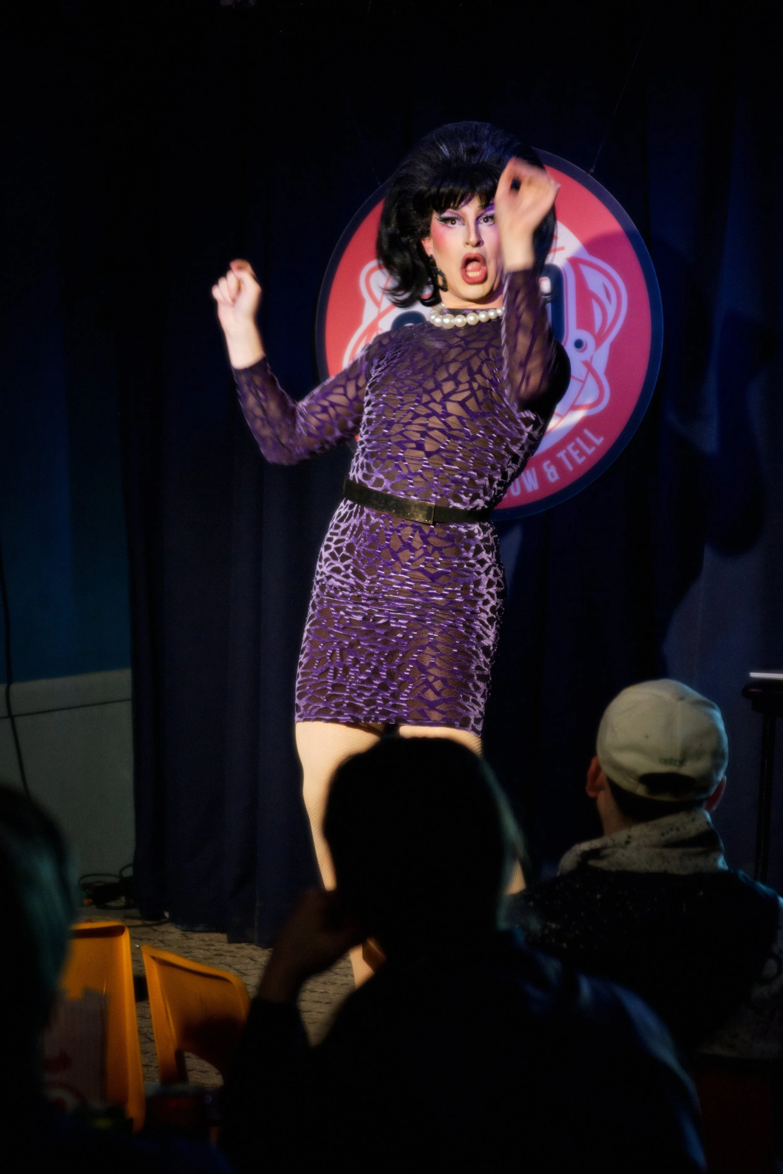 EDEN DARKSTAR emerges from the greenroom and makes her way to the house, a frequent performer, and past winner of WALK OF FAME, she lends her support by boosting audience energy.